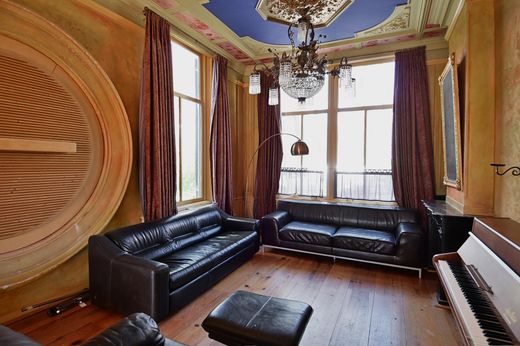 Entree, vestibule, hal met trappenhuis, trapkast en toilet. Werkkamer aan voorzijde met vaste kasten. Voormalige en-suite woonkamer met 2 schouwen, prachtige hoge plafonds en serre aan de achterzijde. Woonkeuken voorzien van originele servieskast, keukenblok met inbouwapparatuur en achter entree.