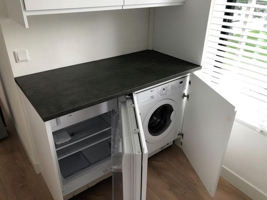 Het appartement beschikt over een volledig nieuwe keuken welke is voorzien van diverse inbouwapparatuur, waaronder een vaatwasser, oven, koelkast en een wasmachine.